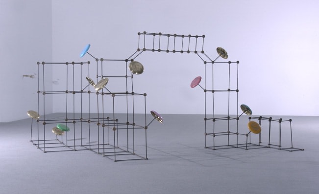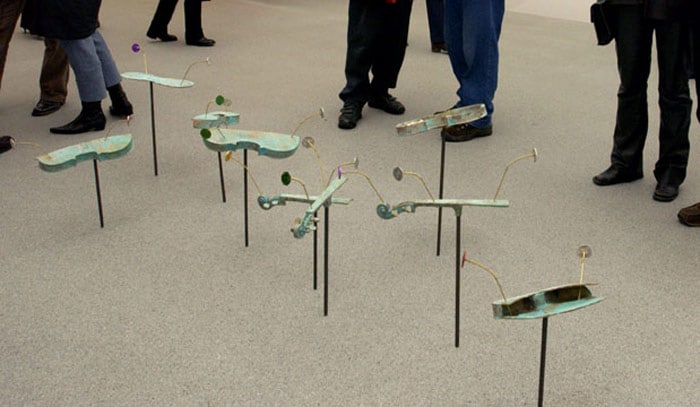 Springtime in Tokyo 2004 dimensions variable bronzed, cast iron, chrome, Mardi Gras dubloon, copper wire