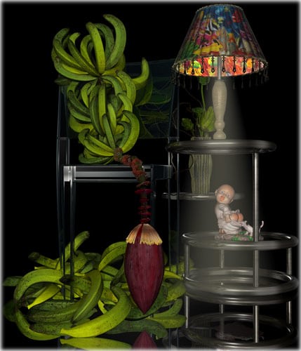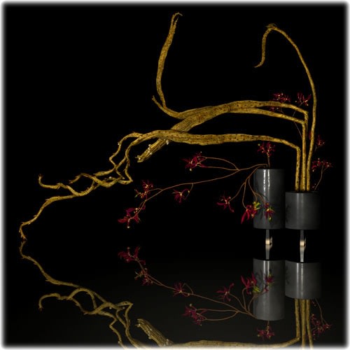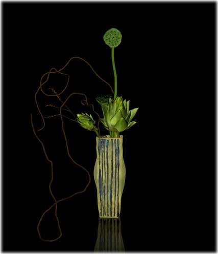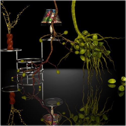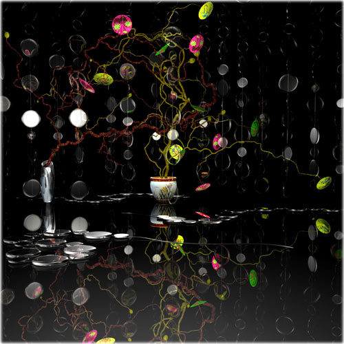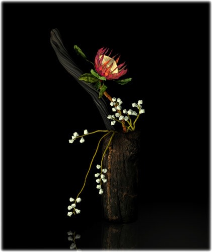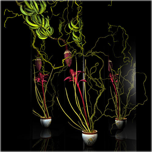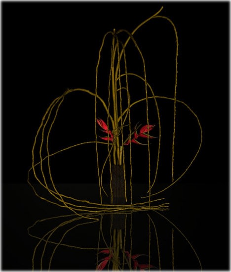 For some reason, Ikebana came back at me the minute I had some proficiency with the 3-D interface. Like learning how to draw, one cannot think beyond the program when one is learning how to make and animate images in a 3-D program. Only when the mechanics become second nature do the ideas start to form. And there it was, my memory of these perplexing little flower arrangements.