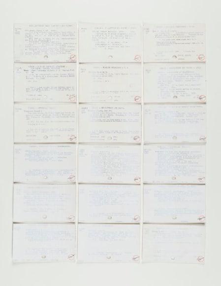 Weinstein uses the library card as a symbol of discarded technology. He began ordering boxes of them on eBay for prices so low it seemed odd that anyone even bothered to list them.