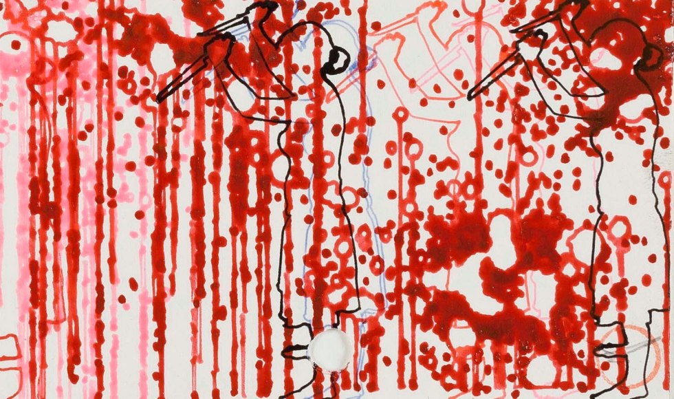 Weinstein's work has always been based on the linking of different ideas and images that have no logical connections into narratives that almost make sense, but fall short of logical build ups of sequence in order to allow the subjectivity of the viewer to dominate his own experience of the work. The medium that Weinstein always floats his associations in is the intensity of the visual experience he delivers, and over the years he has utilized painting, animation, music, drawing and sculpture to achieve this. Looking is the way into this work, just as it is in abstraction, and it has always been Weinstein's intention to find a place in art that can dissolve.