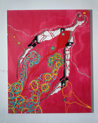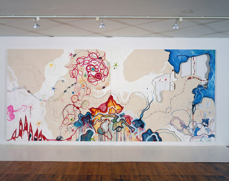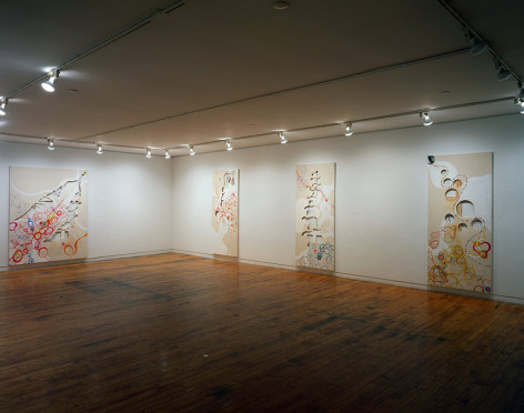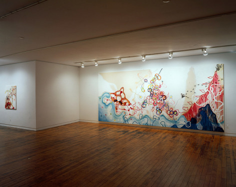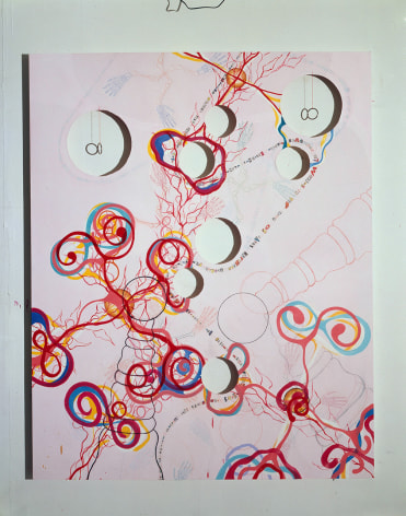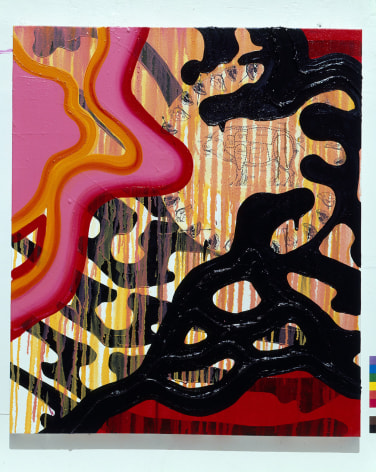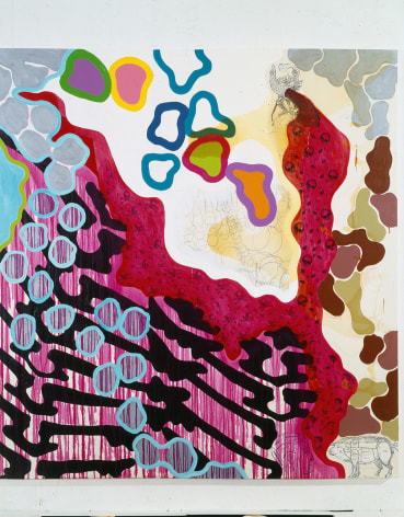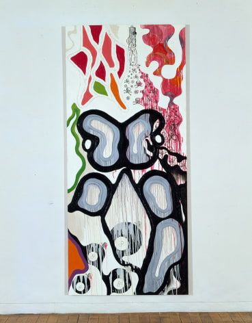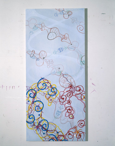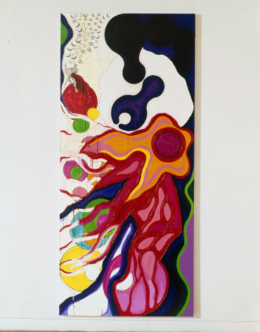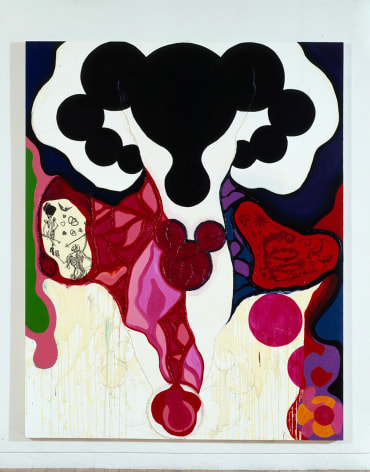 Matthew Weinstein’s newest work underlines the curious fact that a young artist does not always develop most propitiously by becoming more “mature.” It is quite possible to progress by means of regression; art must be able to retreat, consciously, to unself-consciousness, however false. Weinstein’s giddy, sexual, sometimes psychedelic new paintings made me realize that his earlier work was trying too hard to be serious and consistent, to create a signature style that in and of itself would communicate some content with an inarguable claim to the viewer’s attention. Recent discussions of “content” or “meaning” in contemporary art generally, and in abstract painting particularly, have tended to obscure the fact that what counts, usually, is to eschew or better yet explode meaning—since the problem in our culture has never been a deficiency of meaning but, rather, a surplus of it.