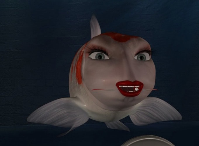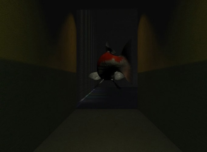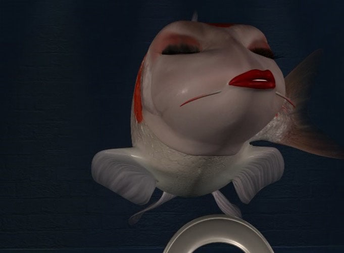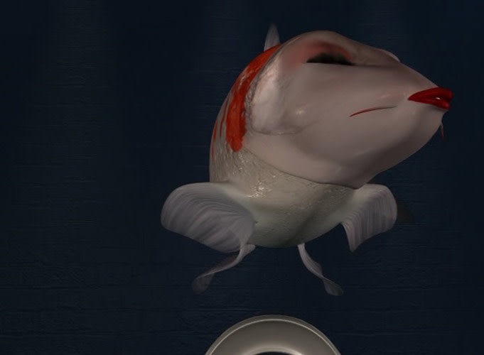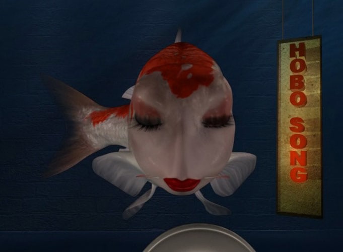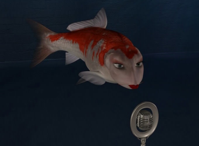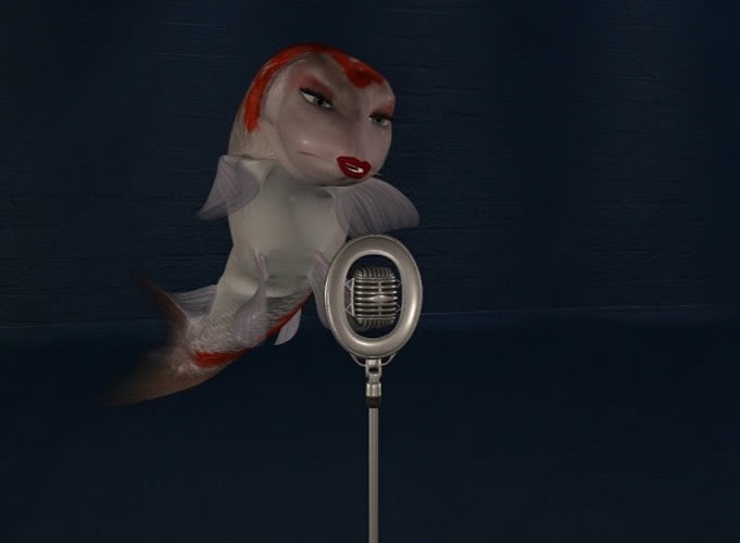 (A 3-D JAPANESE KOI SWIMS DOWN A DARK CORRIDOR. SHE ENTERS A STAGE. SHE SWIMS INTO THE SPOTLIGHT AND BEGINS TO SING)