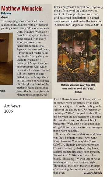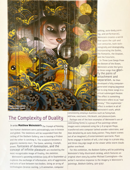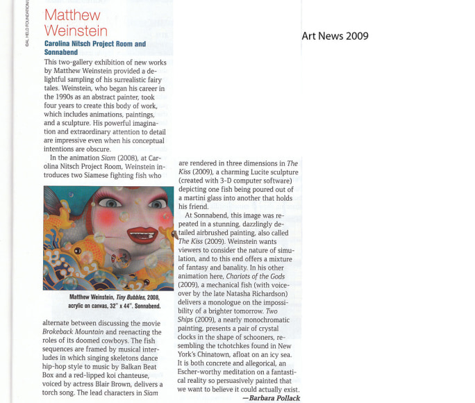 THREE LOVE SONGS FROM THE BOTTOM OF THE OCEAN, is Weinstein's second animated film. It is the first appearance of Weinstein's singing koi, who has since made frequent appearances in Weinstein's animated films and paintings. Her personality continues to develop as part of a long term collaboration between Weinstein and actress Blair Brown. It is also the first time that Weinstein uses songs in his animated films. The script to the piece is below.