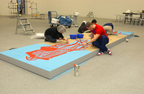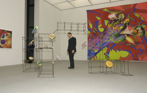 The American artist Matthew Weinstein (born in 1964) transformed Room 21 of the Pinakothek der Moderne into a transcultural Garden of Eden. Sand, sails and frisbees take center stage in this contemporary global dream, where the museum-goer enters “Venice Beach”, a feel-good, easy-going haven for all occidental urban neurotics. This leisure-wear paradise, fashioned from a digital universe, makes every metamorphosis possible: from Adam’s apple to the “Big Apple” and a golden frisbee. What counts is the rush of unleashed opportunity: the perfect body, eternal youth, boundless communication and a deep-seated belief in high-tech that is as potent as exotic talismans and well-placed acupuncture needles. Weinstein dismantles the enticing pretence of fetishism and encourages a critical analysis vis-à-vis the theater of goods and imagination that lies precisely on the border between the necessity for belief and superstition. And as Weinstein’s vision reveals, this superficial craving makes for a joy-ride downwards into our collective cultural history. After all, what is it that separates the search for gold in Miami Beach or the Big Apple from the passion of repeatedly erecting idols, like the Golden Calf, around which we gladly dance? Nothing -- as they are all “Universal Pictures”.